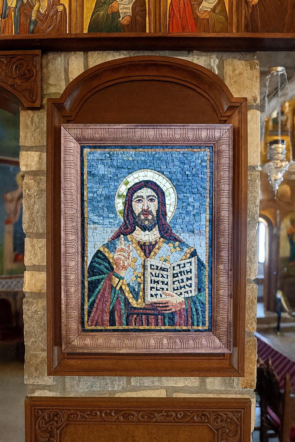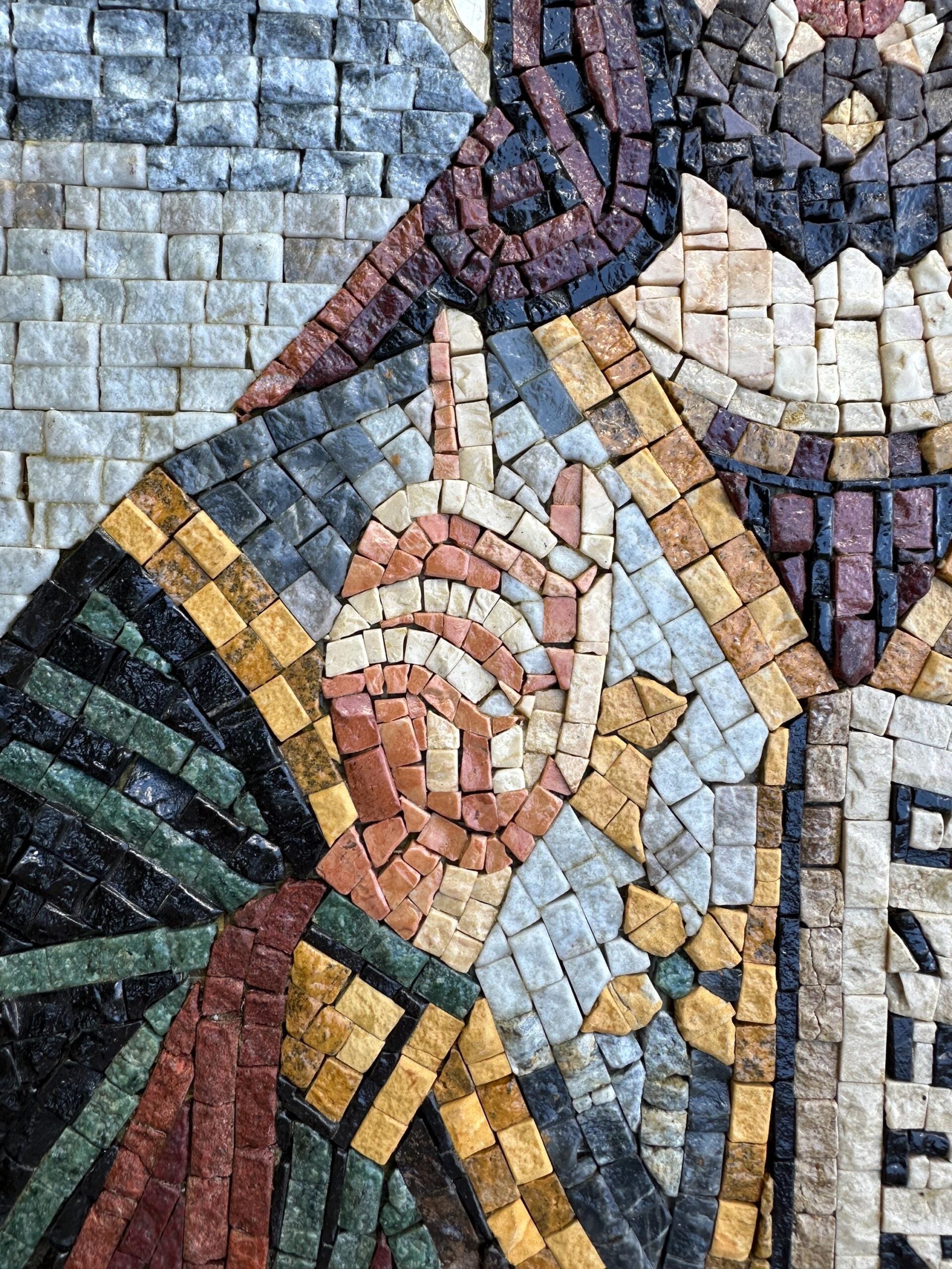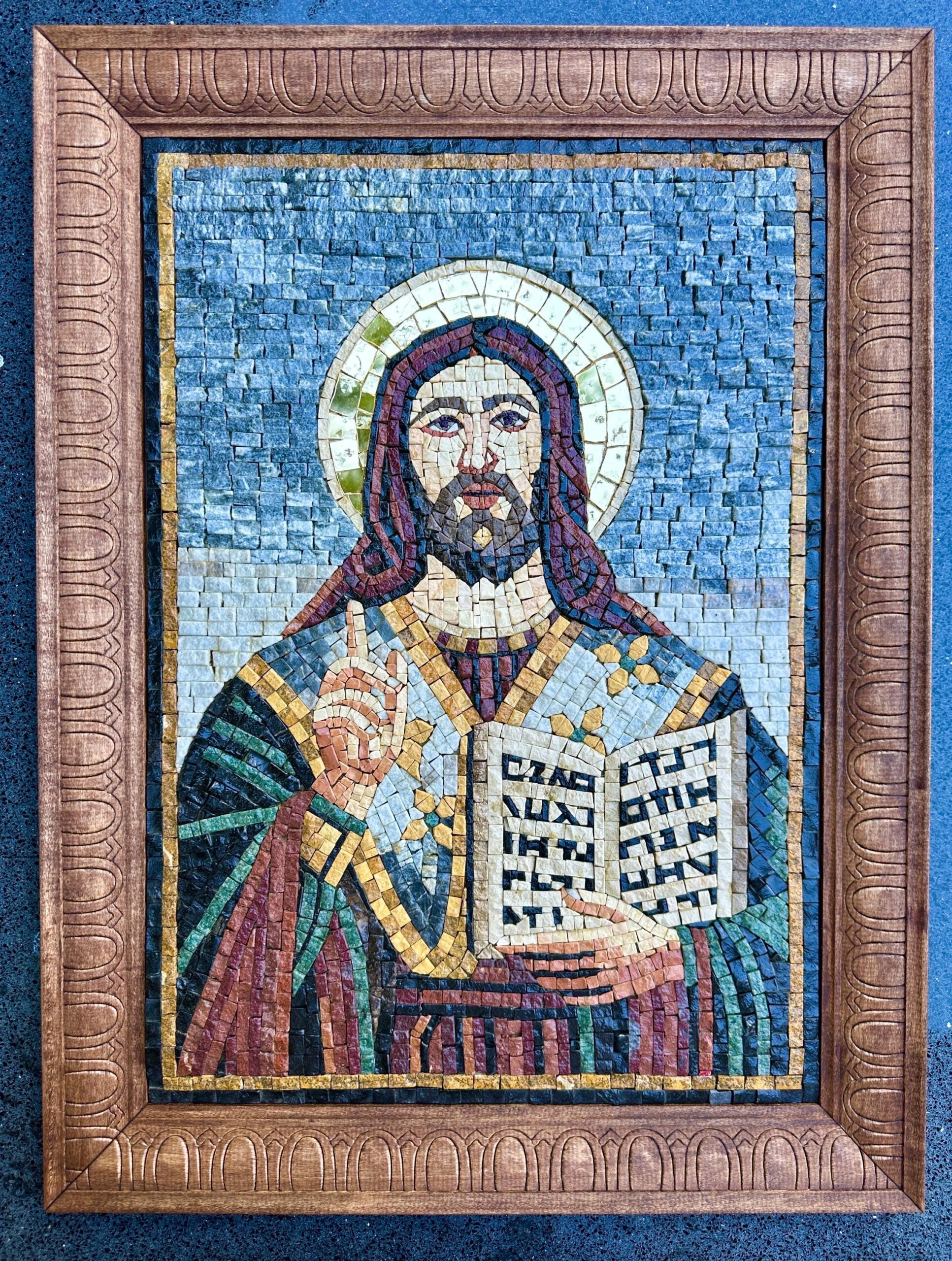 Bring a timeless piece of sacred tradition into your home with this handcrafted Christ Pantocrator mosaic artwork. Created from natural stone and marble, this piece depicts Christ holding the holy book and giving a blessing, a classic symbol of divine wisdom and authority in Byzantine Christian art.