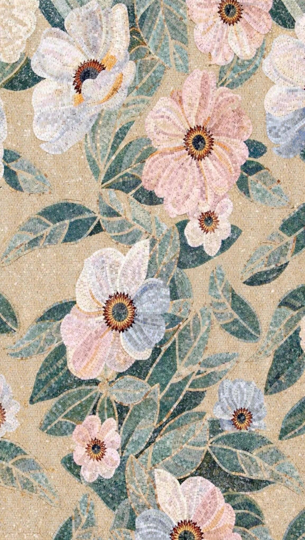 Flower mosaic for floor 145×255 cm