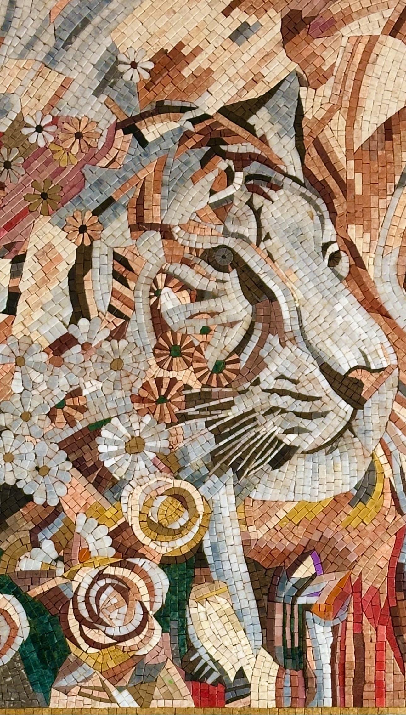 Perfect for luxury homes, galleries, or commercial interiors, this mosaic symbolizes courage, beauty, and the timeless connection between people and nature.