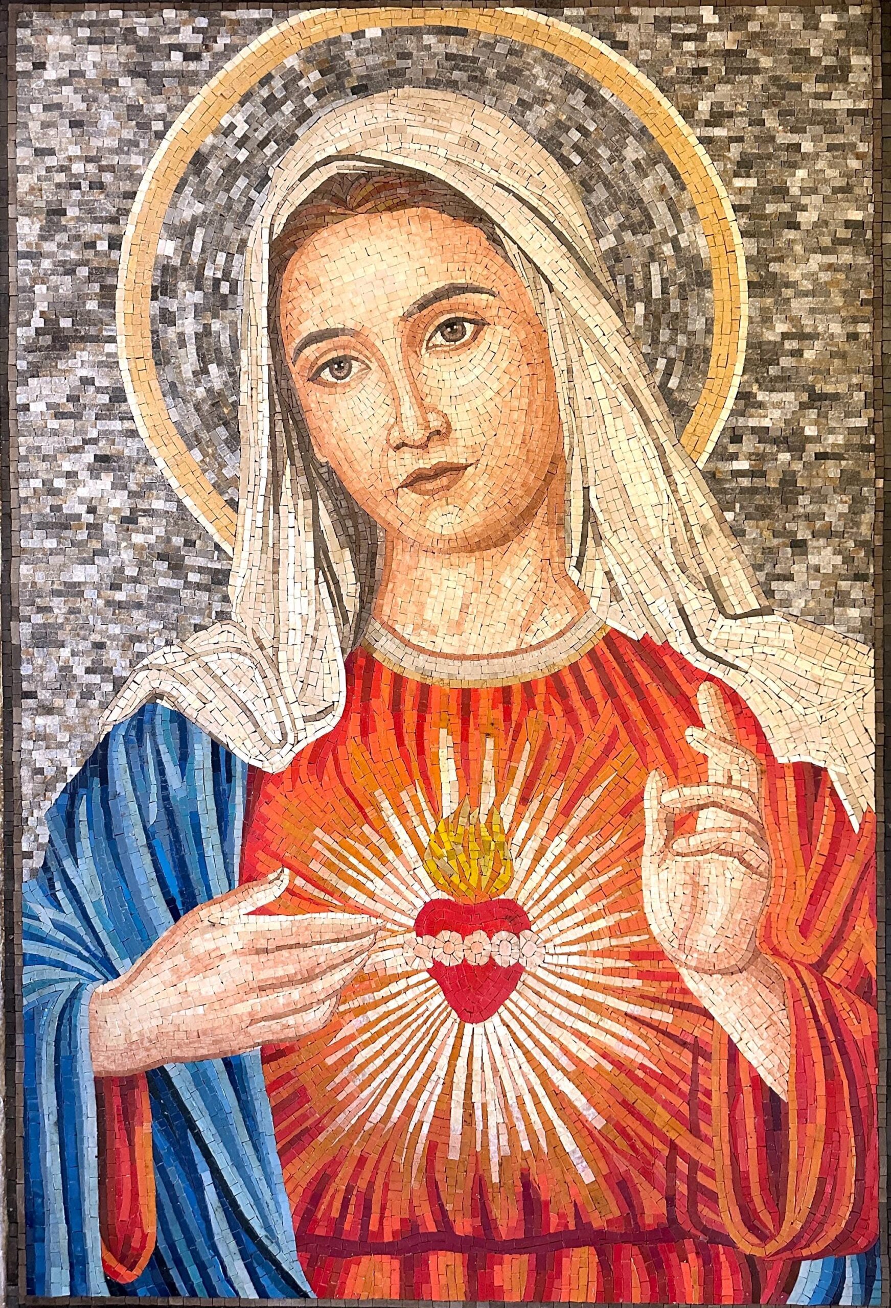 If you are looking for meaningful, heirloom-quality religious art, this Sacred Heart of Mary mosaic will become a cherished centerpiece for generations.