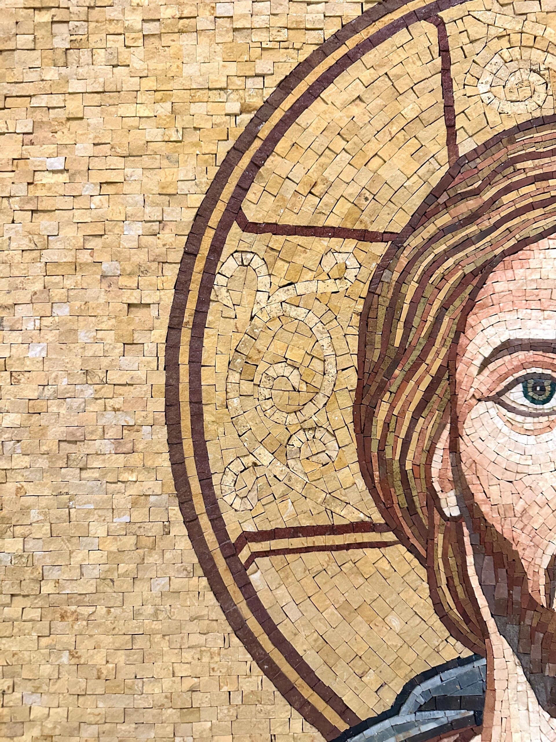 The radiant Sacred Heart symbolizes Christ’s divine love, mercy, and compassion. Warm golden tones form a luminous background, while detailed facial features and flowing garments give the mosaic a serene and reverent presence. This artwork is ideal for prayer spaces, churches, chapels, and Christian homes seeking meaningful, heirloom-quality decor.