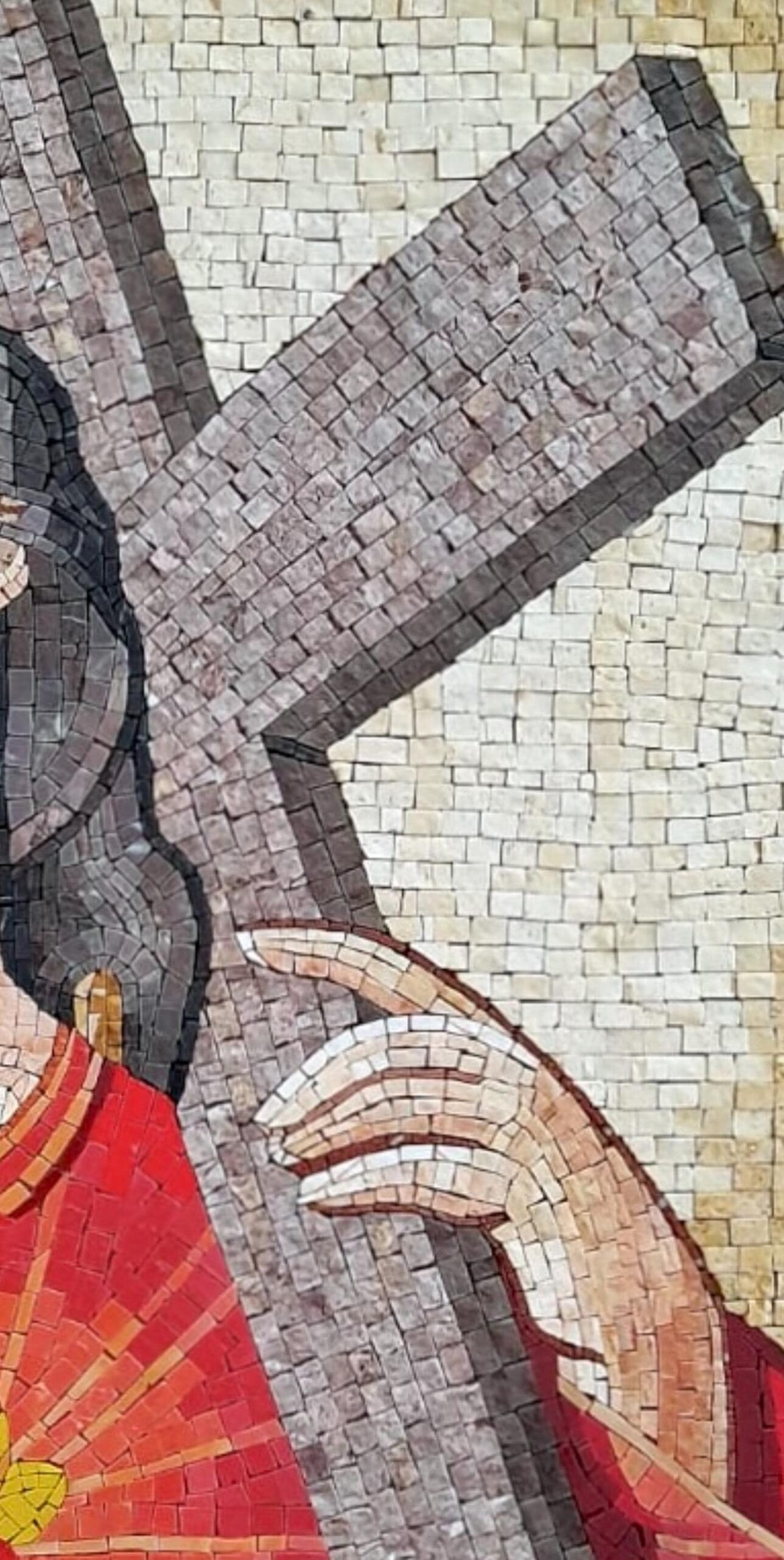The detailed artistry and rich tones make it a powerful piece for prayer rooms, churches, or homes seeking spiritual inspiration. Each mosaic is a unique handmade creation that reflects timeless devotion and faith.