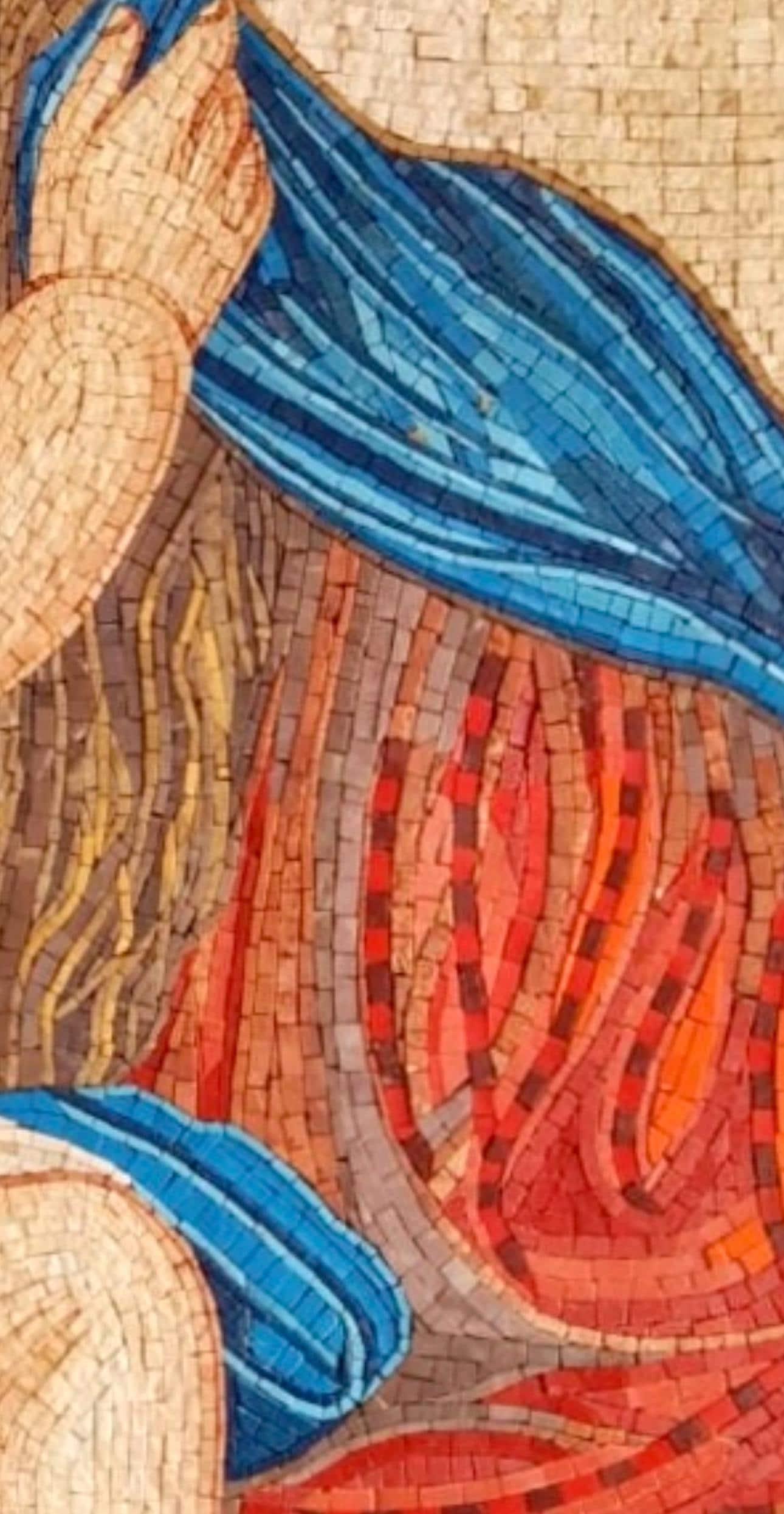Perfect for homes, chapels, or sacred spaces, this mosaic brings peace and serenity through its gentle composition and enduring materials. Suitable for both indoor and outdoor display, it can be installed directly on a wall or framed for elegant presentation.